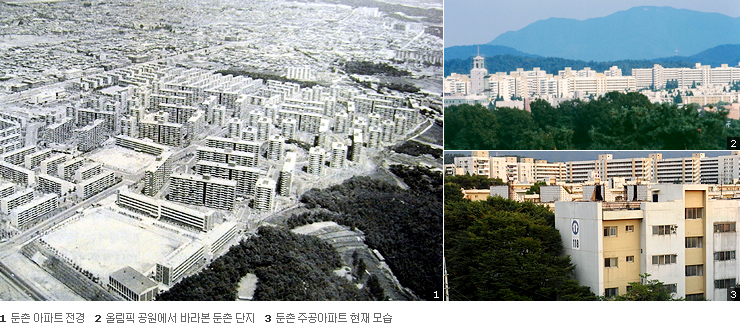강동대로를 사이에 두고 송파구와 어깨를 나란히 한 둔촌1동에는 둔촌 주공아파트밖에 없다. 둔촌주공 1,2,3,4단지 5,930가구가 둔촌1동 인구의 전부다. 지금은 10차선 대로변에 음식점이며 은행, 편의점 등이 늘어섰지만 30년 전만 해도 일대가 휑했다. 도심에서 동남쪽으로 15km, 하남시 경계와 맞닿은 서울의 동쪽 끝 벌판이었다. 그 벌판은 1970년대 서울 송파구 잠실동 잠실단지(1만 9,180가구)와 반포1단지(3786가구)공사를 시작하면서 한강 이남 개발 붐이 일 즈음, 새로운 주거단지 조성지로 꼽혔다. 둔촌단지도 거대한 공급계획의 일환이었다. 당시 주택공사의 목표는 ‘하루에 100가구씩 짓기’ 였다. |